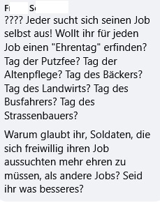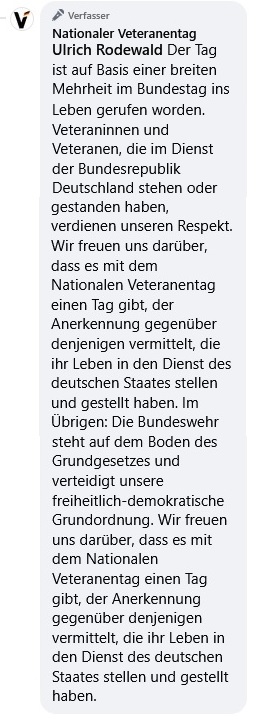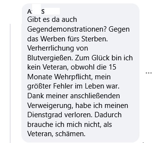 Diese Mitteilung haben wir der Adresse "Nationaler Veteranentag" auf facebook geschickt. Nebenstehend die Antwort