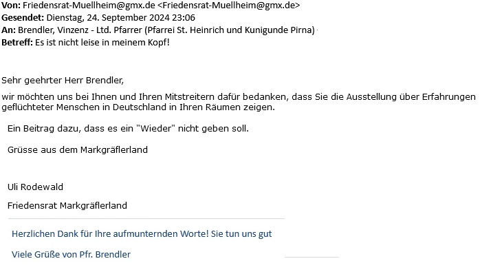 Dem Pfarrer in Pirna haben wir unseren Dank und Anerkennung für sein mutiges Engagement ausgesprochen, damit ein "Wieder" (Verfolgung) nicht geschieht.