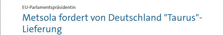 >> EU-Parlamentspräsidentin Metsola hat Deutschland dazu gedrängt, endlich "Taurus"-Marschflugkörper für die Ukraine freizugeben. Dafür gebe es im EU-Parlament eine breite Unterstützung. Die Ukraine könne nicht ewig weiter warten. |
